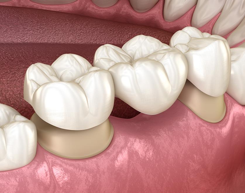 A dental bridge is a fixed restoration that replaces one or more missing teeth by anchoring an artificial tooth to the natural teeth or dental implants beside the space. Bridges help fill gaps left by missing teeth and may assist in maintaining bite alignment, supporting speech, and preserving overall oral function.